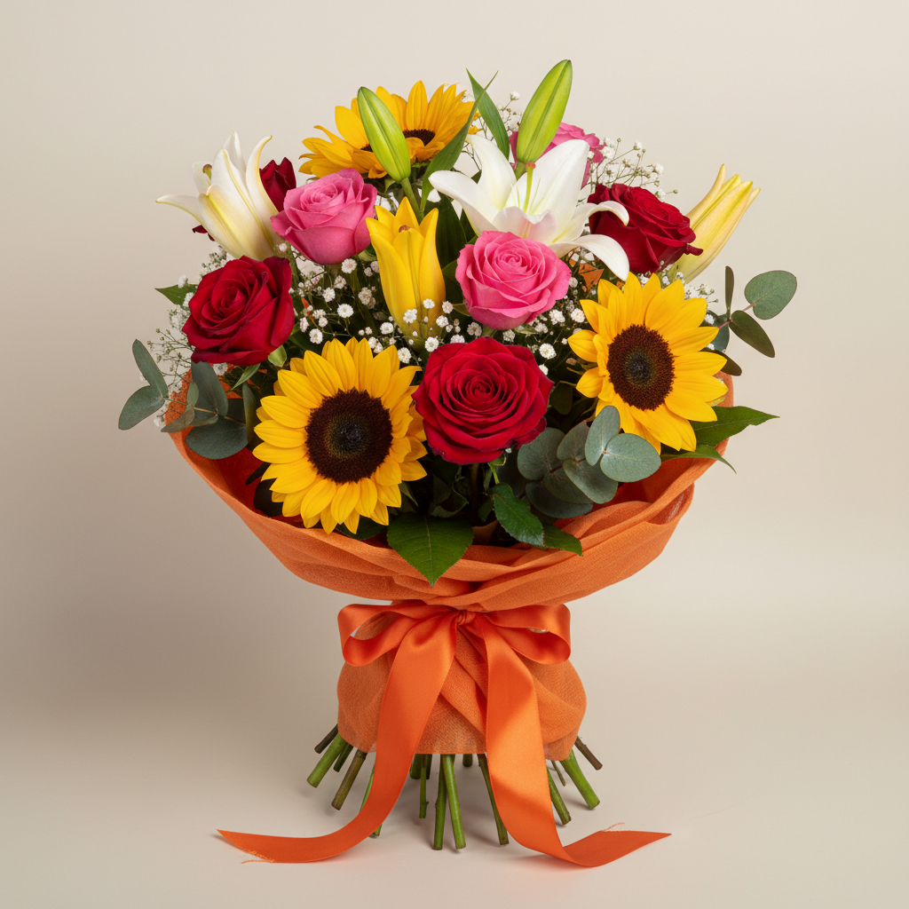 Le rose rosse simboleggiano amore profondo, mentre i girasoli portano gioia e ottimismo. I gigli bianco esprimono purezza, mentre quelli gialli e arancioni trasmettono calore e vitalità.🌻
